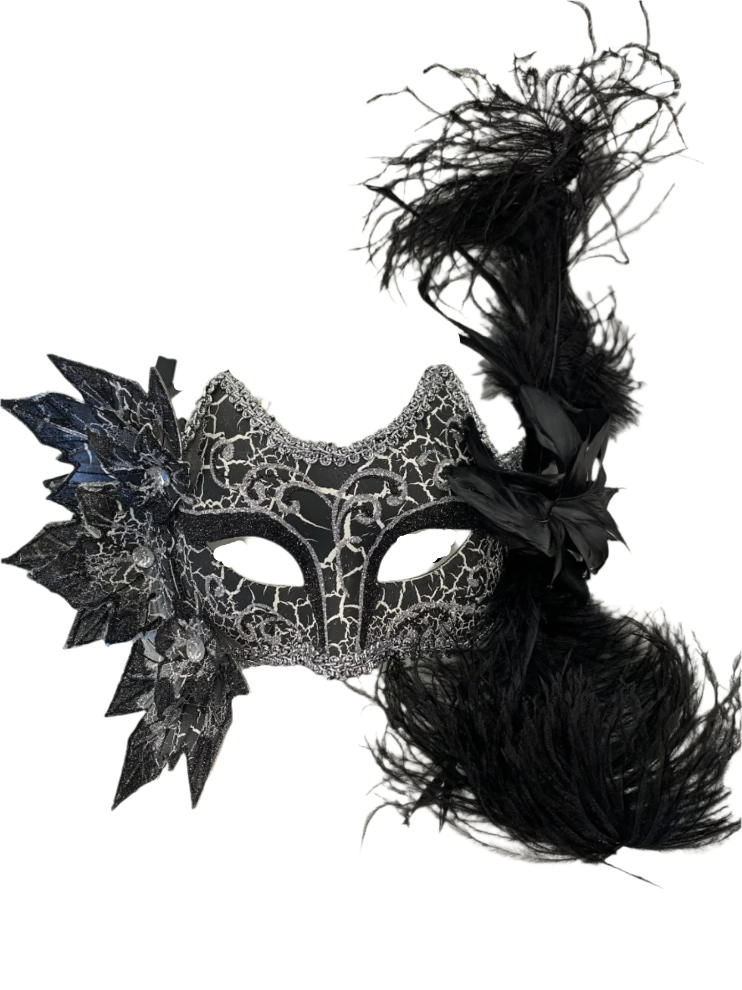 Add a touch of mystery and flair with this Black/Silver Mask adorned with elegant black feathers. Perfect for parties or masquerade balls, it combines sleek silver accents with playful feather details to make you stand out. Lightweight and comfortable, itβs your go-to accessory for a night full of fun and intrigue.