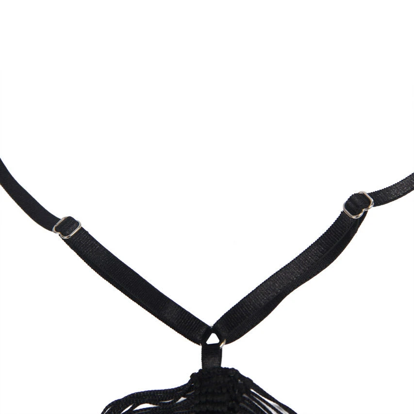 This sexy, shimmy fringe chemise lingerie features fringe draping detail, a racer-style back with adjustable straps, and matching thong.